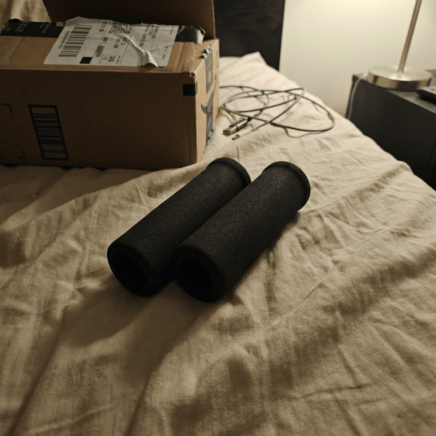 You've tried padded gloves. Maybe told yourself you just need to stop more often. The real fixes; new bars, aftermarket grips, bar-end weights - cost serious money or a trip to the workshop. The cheap Amazon foam tubes slip or go mushy inside a season.